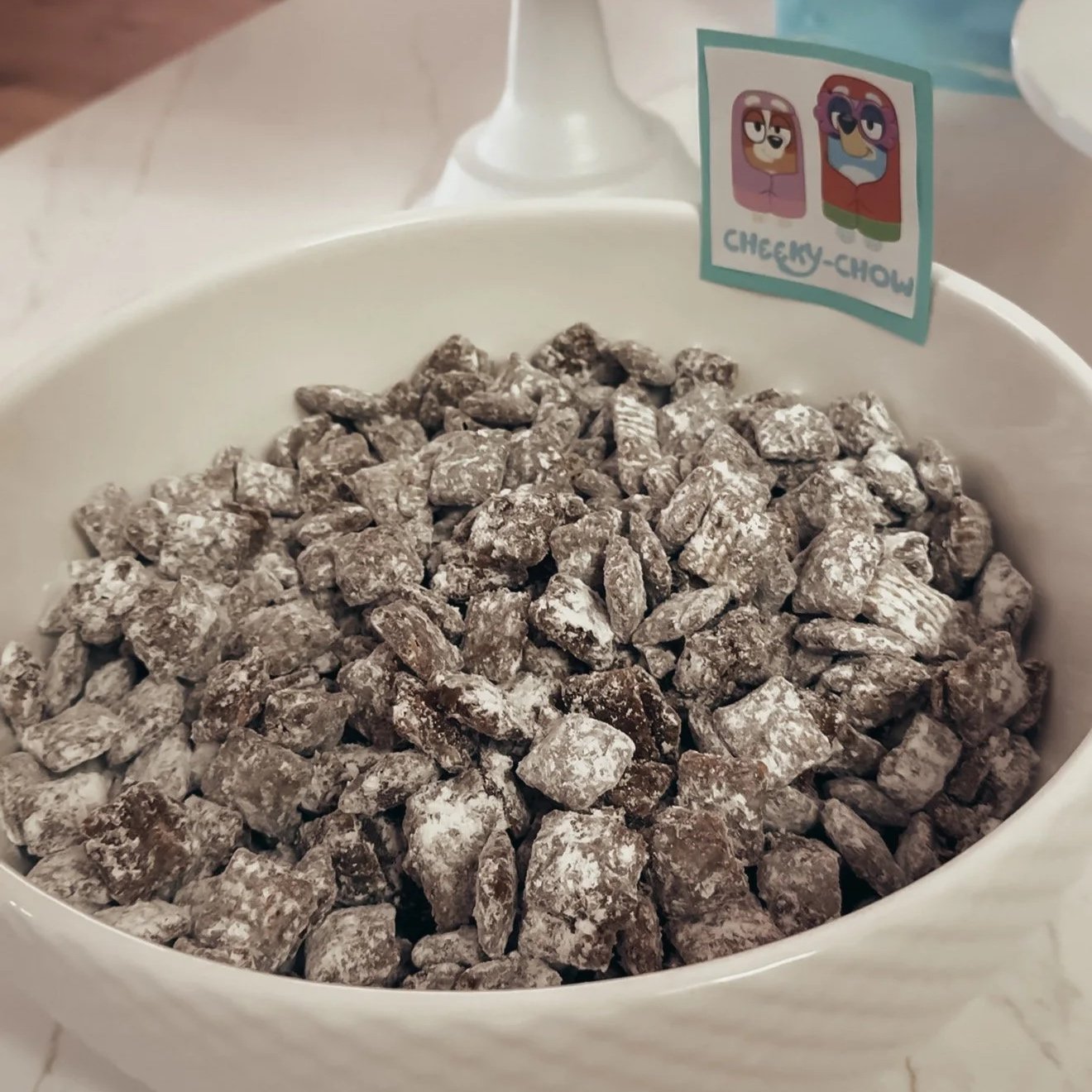 Transfer to a gallon size bag. Pour 2 cups of powdered sugar into the bag. Gently shake around to coat the Chex.